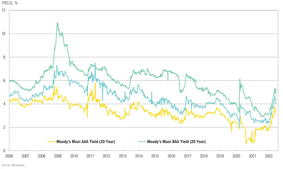 Yields on municipal bonds are also trending higher; now above pre-pandemic levels