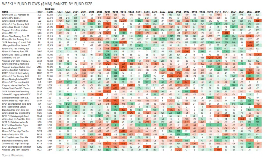 YTD ETF Flows: TIPS and preferred funds seeing the largest outflows, with mixed flows across other sectors