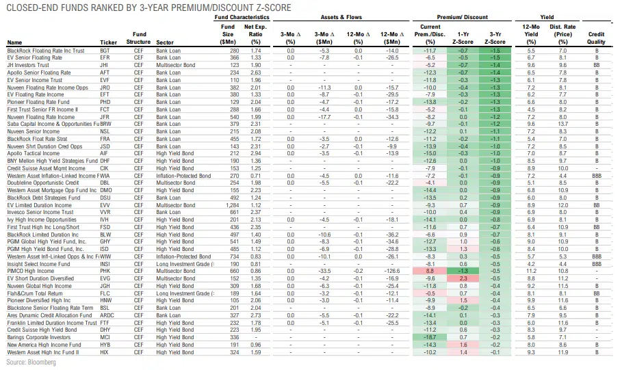 Closed-end fund discounts have widened, nearing 1 standard deviation cheap relative to the long-term average