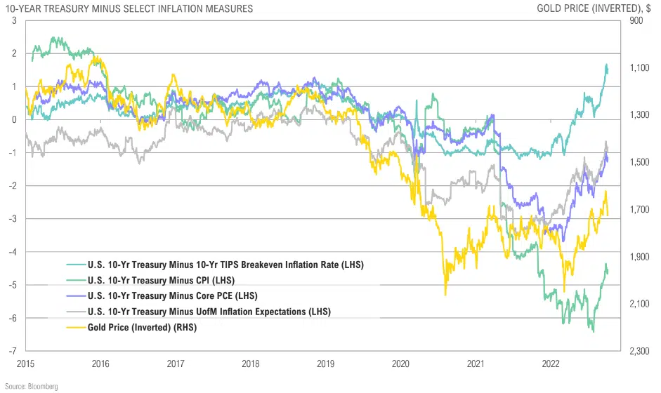 Real yields have remained deeply negative except for TIPS-implieds; gold declined in September with most of the weakness driven by dollar strength
