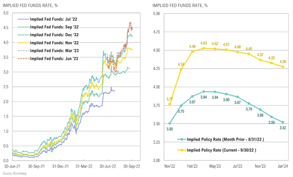 The implied year-end Fed funds rate is back near local highs as the market has repriced the Fed pivot following September FOMC