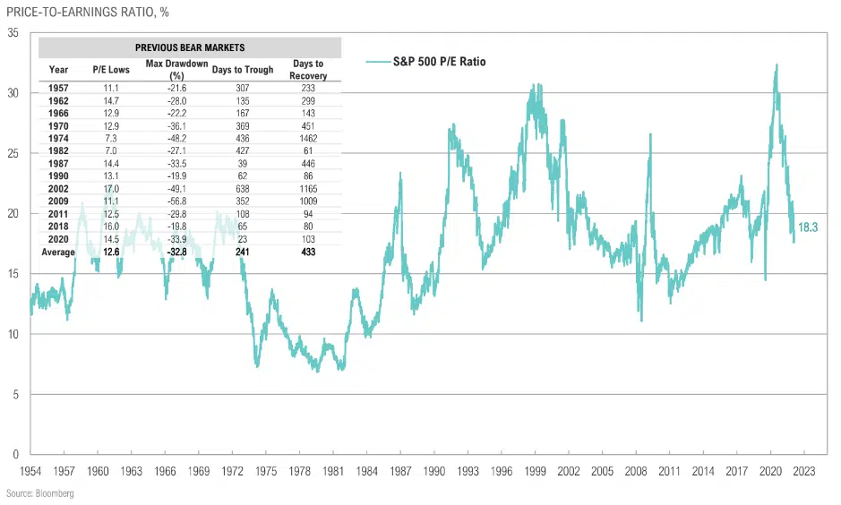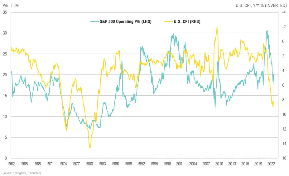 The last time inflation was as elevated as it is now, P/E multiples were in the high single digits to low teens