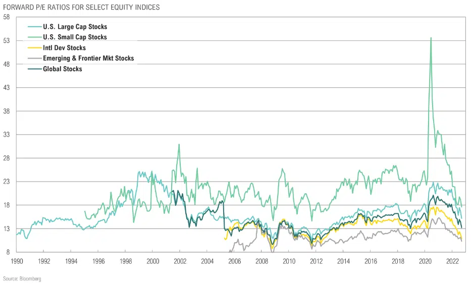 EM stocks remain relatively cheap vs. developed markets, but “value trap” risk remains due to geopolitics, global food and energy crisis