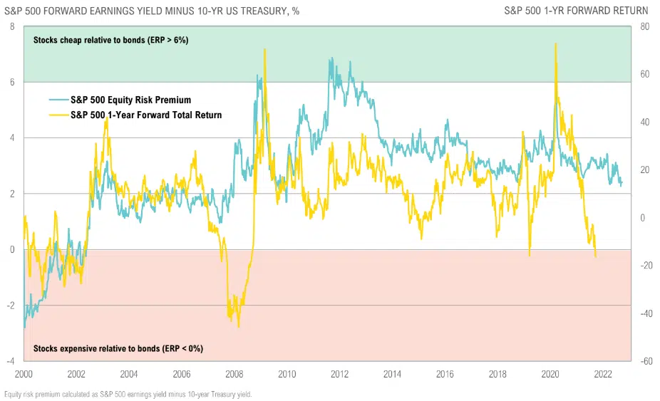 Despite being in a bear market, stocks are arguably less attractively priced vis-à-vis bonds than they were coming into the year
