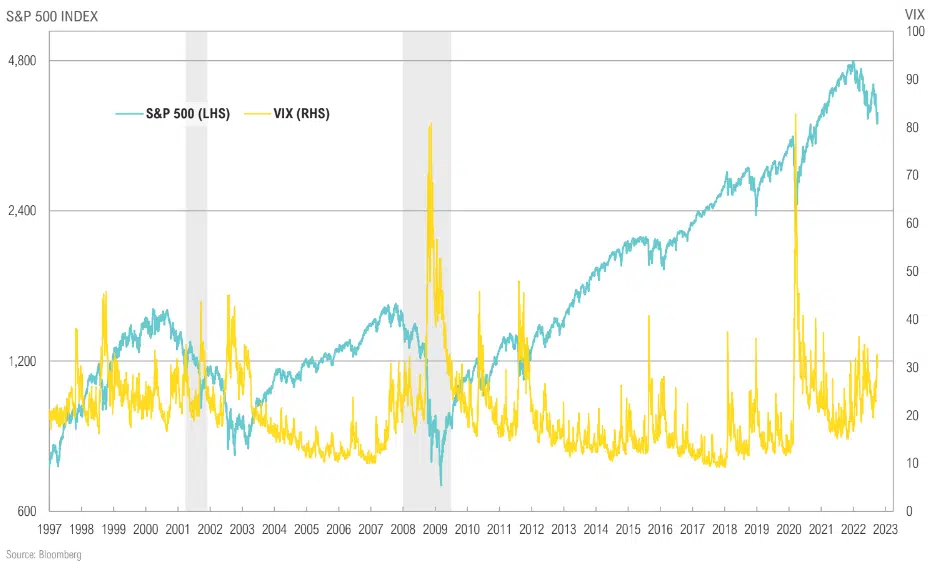 Lower equity prices have helped ease valuations; implied volatility was contained for most of the quarter but ended the quarter back above 30