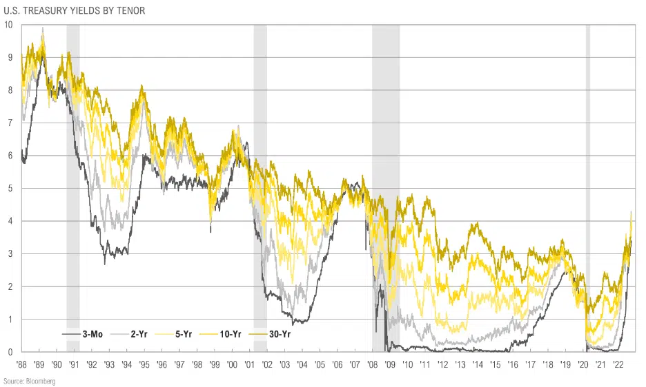 Parts of the Treasury yield curve have moved into deeply inverted territory as inflation and rate hikes have started to take their toll on growth