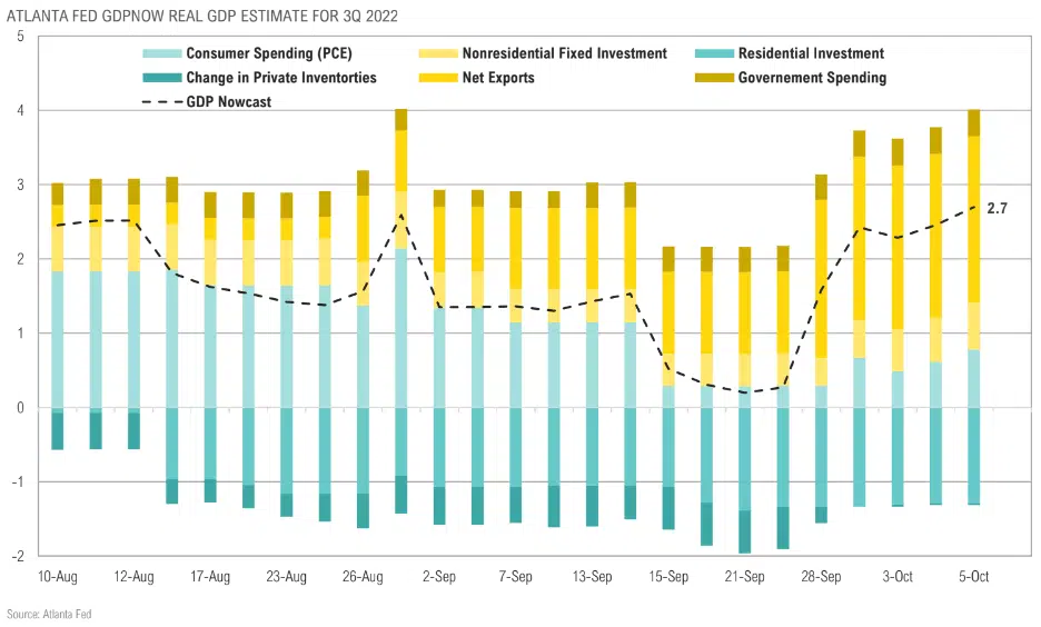 Atlanta Fed expectations for 3Q22 GDP rose sharply toward the end of the September, largely driven by improvements in net export and consumer spending estimates