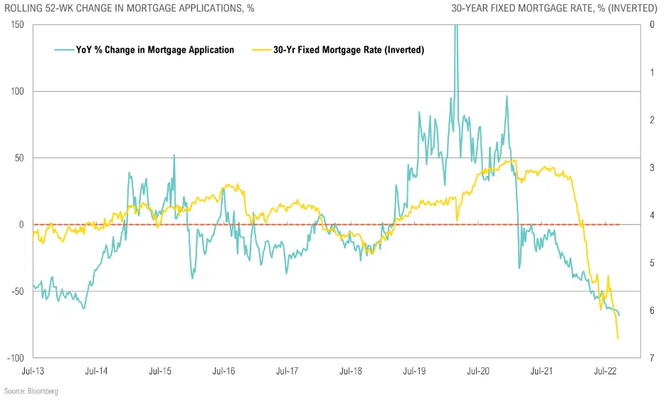 U.S. mortgage applications have plummeted, -68% year-over-year, as fixed mortgage rates have spiked from 3% to near 7% in just nine months