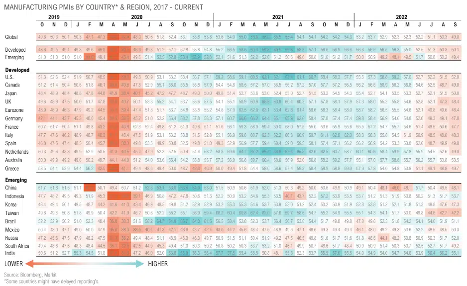 Global manufacturing activity dropped in September as emerging market activity contracted while developed market activity stalled further