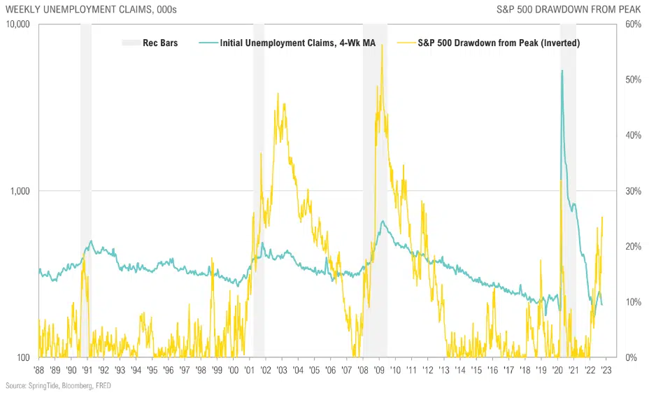 Stocks sold off sharply in September and are once again down over 20% from all-time highs; unemployment, which is a lagging indicator, remains low