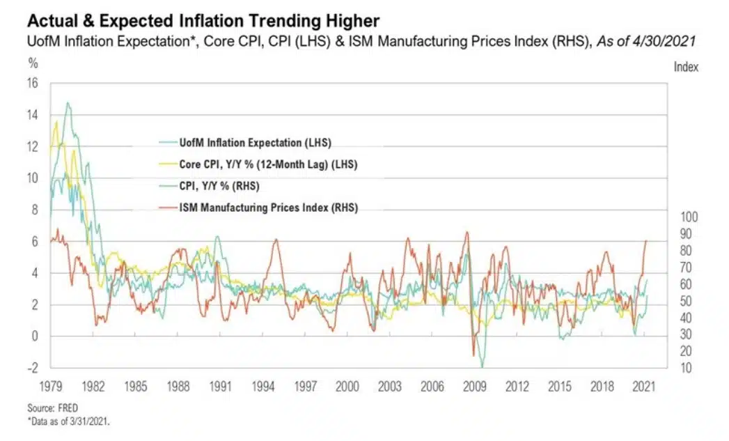 For the year ending April 2021, the Consumer Price Index rose 4.2% representing the largest year-over-year increase since September 2008.