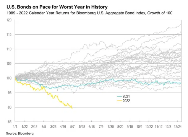 The Bloomberg U.S. Aggregate Bond Index was down 3.8% over the month and is down 9.5% year to date. This significant drop represents the index’s worst year since it was created in 1976, surpassing the previous record of -2.9%, which occurred in 1994.