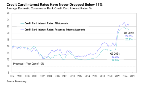 Trump has proposed a one-year 10% cap on credit card rates, with bipartisan support despite bank concerns