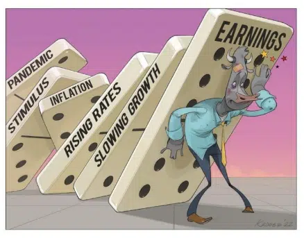 The economy is, of course, far more complex and dynamic than a row of dominos, and we do not have the benefit of hindsight. The intersection of slowing growth and high, albeit easing, inflation has driven real economic activity to stall. How the Fed responds to this dynamic remains the wild card, but there are no easy decisions ahead. If the Fed stops tightening policy too soon, it may reignite risk-taking and stoke inflationary pressures. If it continues to tighten, the U.S. economy will likely continue to slow, taking corporate profits with it.