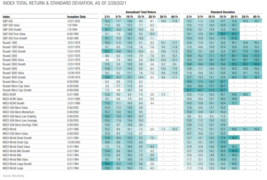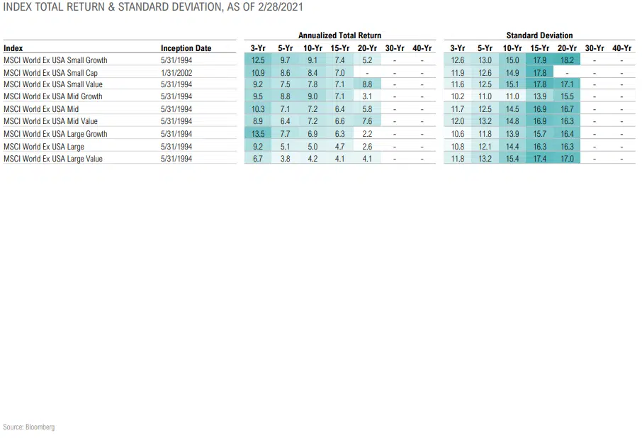 This report may include estimates, projections or other forward-looking statements, however, due to numerous factors, actual events may differ substantially from those presented. The graphs and tables making up this report have been based on unaudited, third-party data and performance information provided to us by one or more commercial databases. Except for the historical information contained in this report, certain matters are forward looking statements or projections that are dependent upon risks and uncertainties, including but not limited to factors and considerations such as general market volatility, global economic risk, geopolitical risk, currency risk and other country-specific factors, fiscal and monetary policy, the level of interest rates, security-specific risks, and historical market segment or sector performance relationships as they relate to the business and economic cycle.