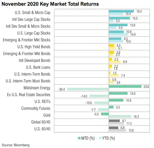 Developments during the month of November, particularly election results and vaccine news, served to remove uncertainties, and as a result, asset prices increased substantially across markets.