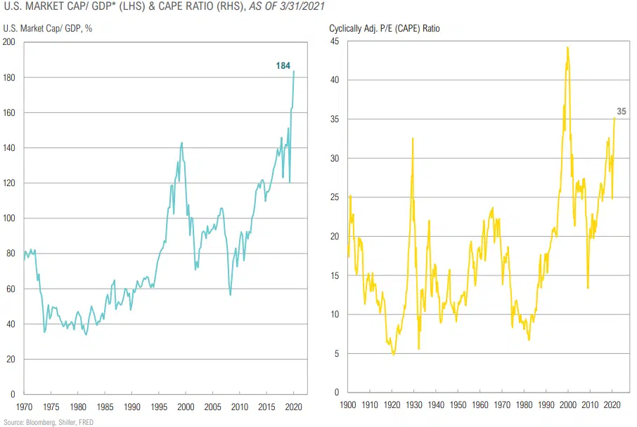 Shiller P/E: Valuation measure that takes into consideration the price and cyclically adjusted earnings of a security, adjusted for inflation.