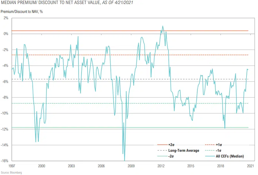 CEF Discounts Have Continued to Narrow, Now >1σ Above Average