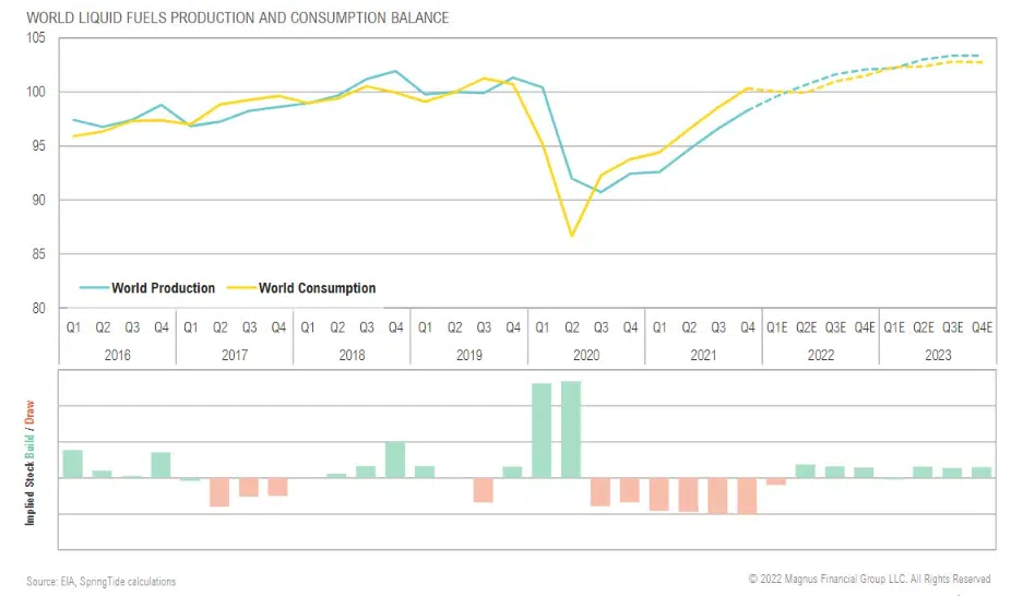 As expected, snapback in energy consumption is outpacing production; production expected to match consumption later in 2022 per EIA, but this remains to be seen