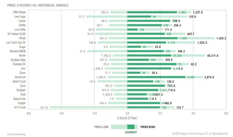 Several commodities hit new all-time highs following Russia’s invasion of Ukraine given their importance to global supply of energy and food