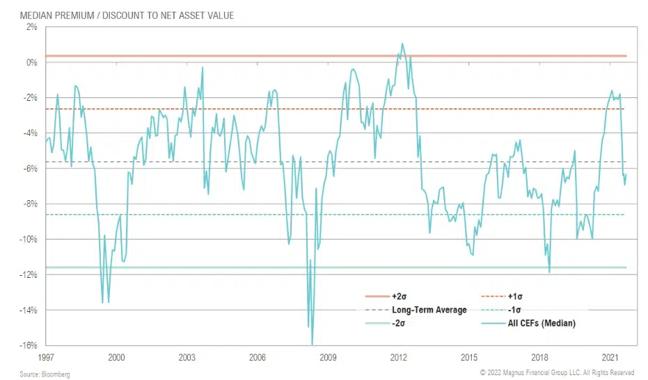 CEF discounts were unchanged month over month at -6.3%, but widened to >7% intramonth