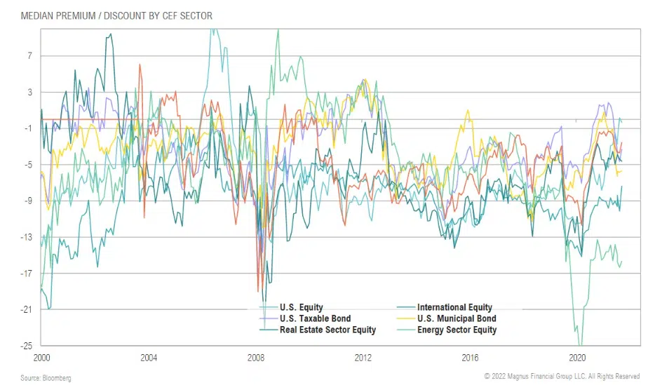 CEF discounts mixed by sector; taxable bond CEFs still no longer trading at a premium while energy sector discounts remains stubbornly wide