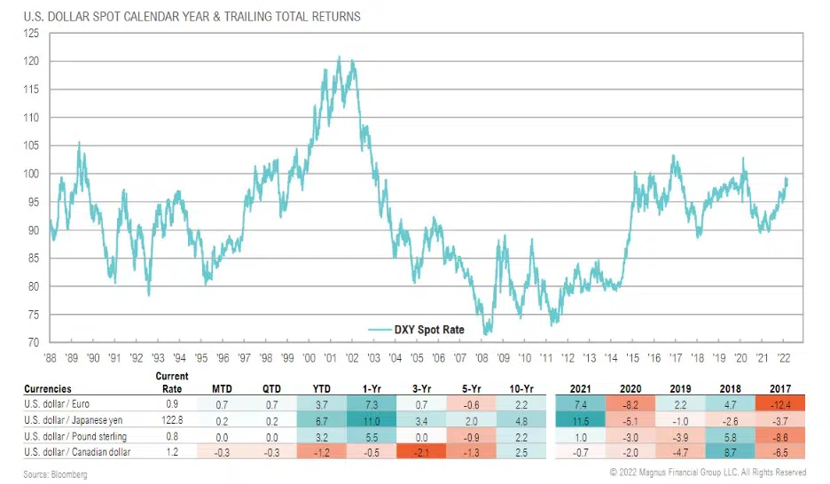 U.S. Dollar strength driven by relative real yields and safe-haven bid due to Russian invasion of Ukraine