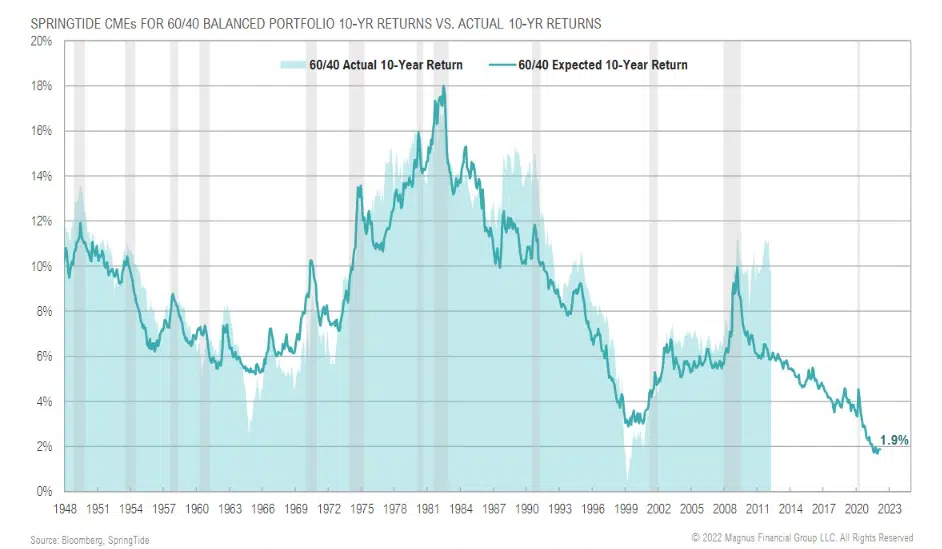 Expected returns for passive 60/40 portfolio picked up modestly, but remain near all-time low