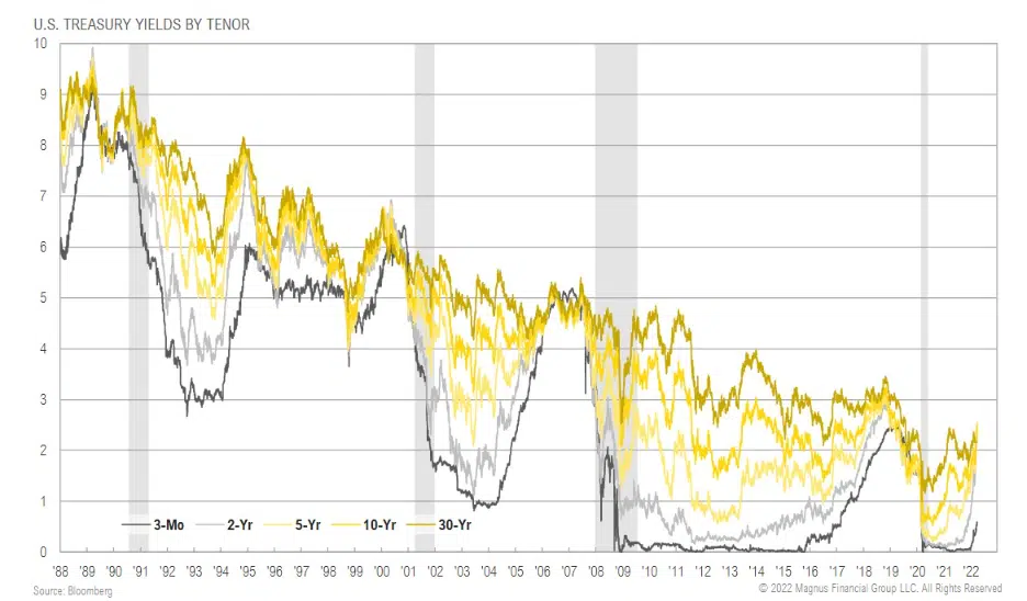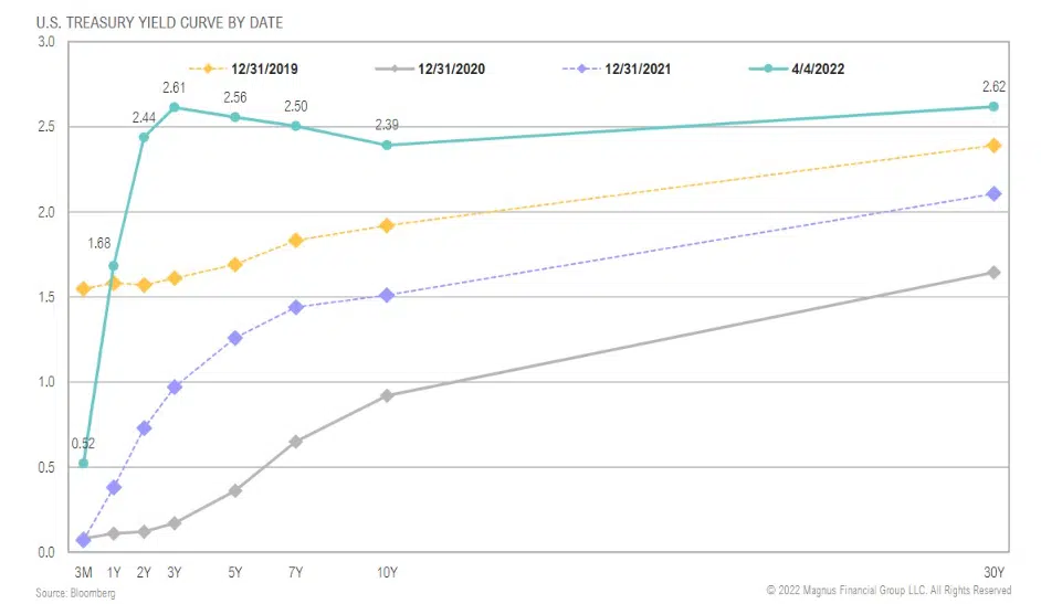 Parts of the Treasury yield curve have inverted as expected rate hikes have pulled up short rates at the expense of longer-term growth