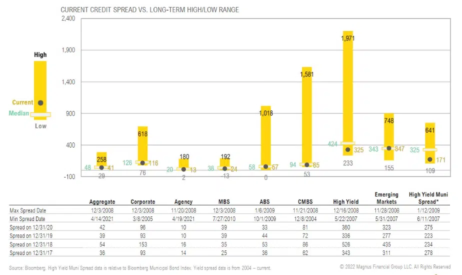 Credit spreads near median across most sectors as almost all pain in credit has been due to duration component (not spread widening)