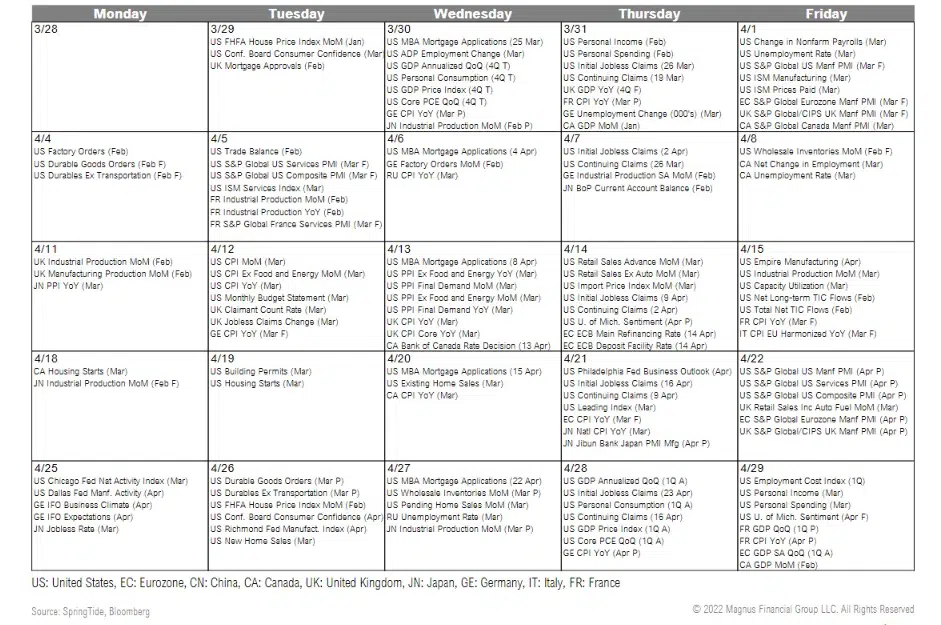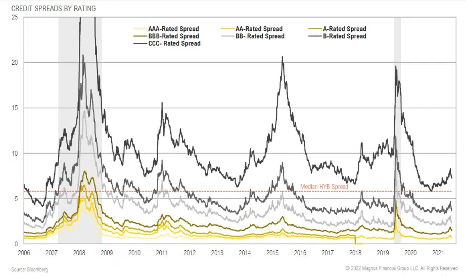 Credit spreads tightened in March after modest widening in February; markets grappling with when and by how much inflation and higher rates will crimp growth