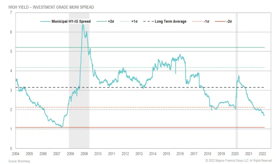High yield-to-investment grade munispreads near tightest levels since 2007