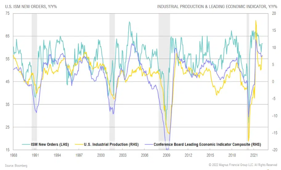 Industrial production and leading indicators peaked as growth in the U.S. slowed in 3Q; indicators continue to trend lower