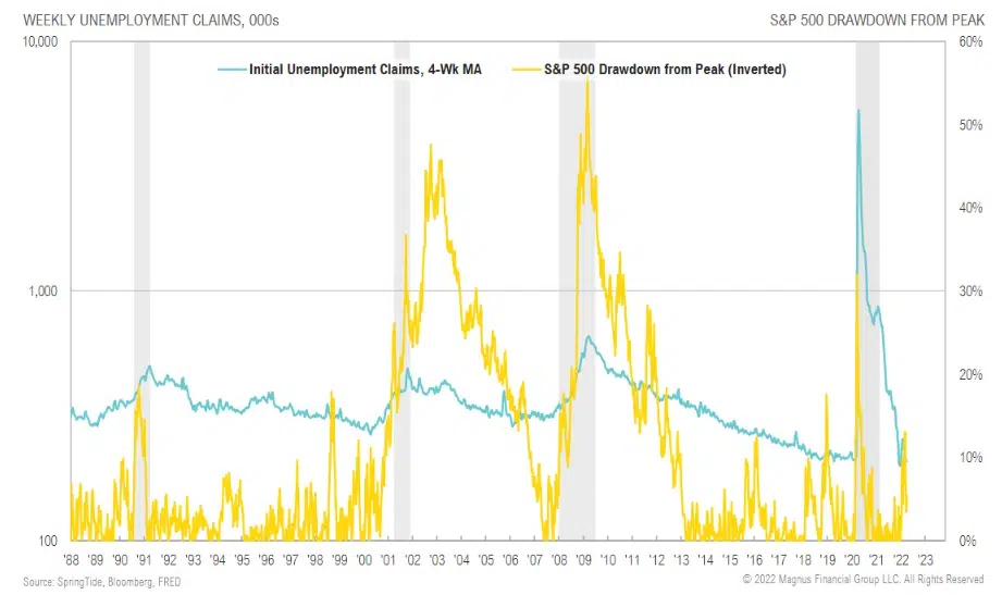 Unemployment claims have again dropped to near 200k; stocks are 5% off all-time highs