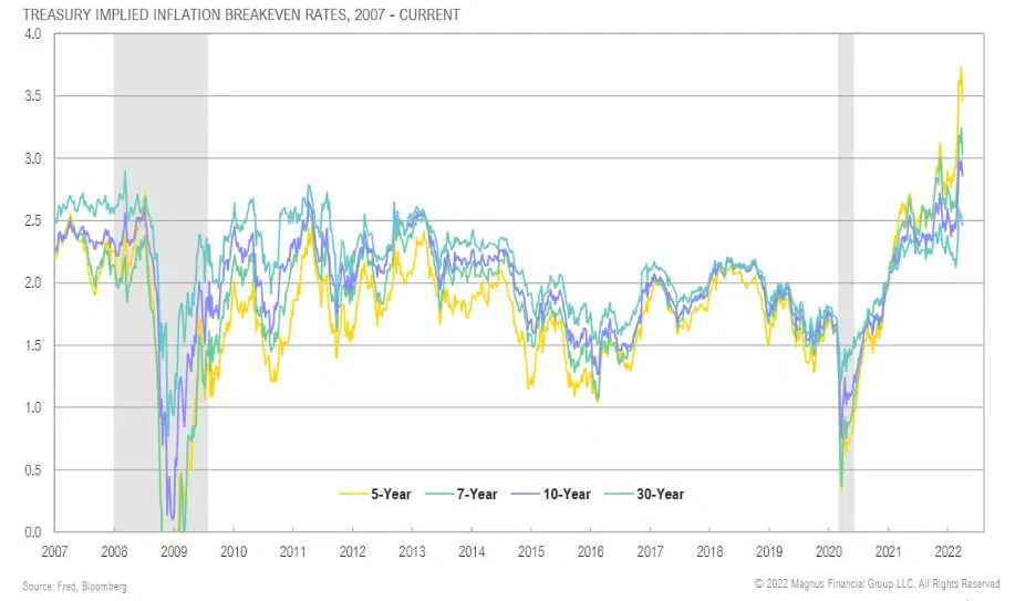 Intermediate-term inflation expectations breaking out to multi-decade highs as Fed’s obtuse policy stance is stoking bond vigilantes