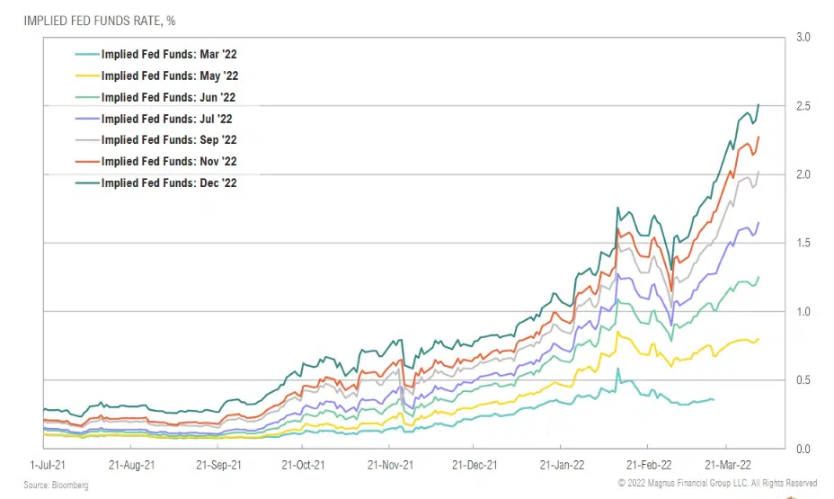The market is now pricing in 10 rate hikes in 2022 (9 more), up from 6 expected at the start of March