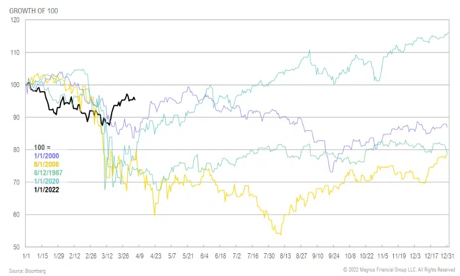 Despite headlines, unprecedented policy support helped 2021 become one of the least volatile years for stocks in half a century; no surprise that 2022 is off to a rockier start