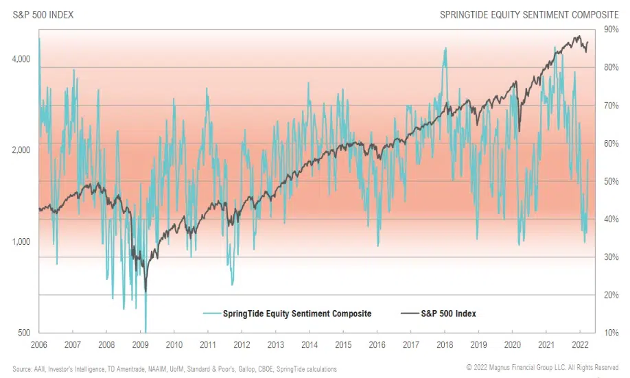 U.S. equity sentiment has rebounded to 56% from below 40% in February, room for upside, but also potentially a sign of growing complacency