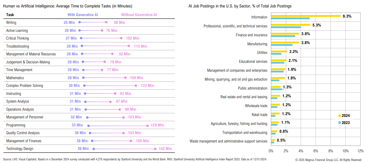 A Stanford University + World Bank study shows how generative AI is increasing efficiency for a number of tasks; AI-related job openings are increasing