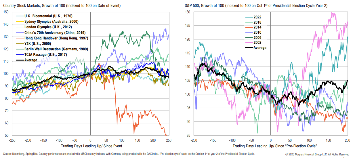 While the U.S.’s 250th anniversary will be a celebratory milestone, similar historic events have often coincided with market tops; the typical “pre-election cycle” rally is usually preceded by a selloff