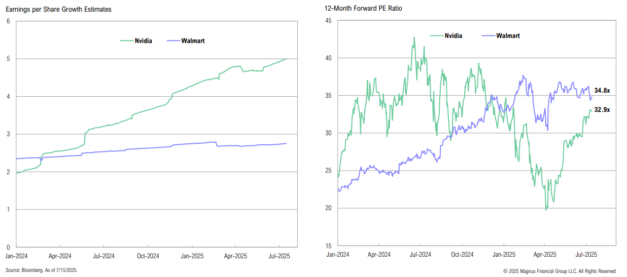 On a forward P/E basis, Nvidia is cheaper than Walmart—despite notably stronger earnings growth expectations