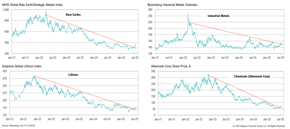 Big Breakout Basket: a shift in policy towards industrialization/ onshoring has caused some smaller sectors to break out from substantial downtrends