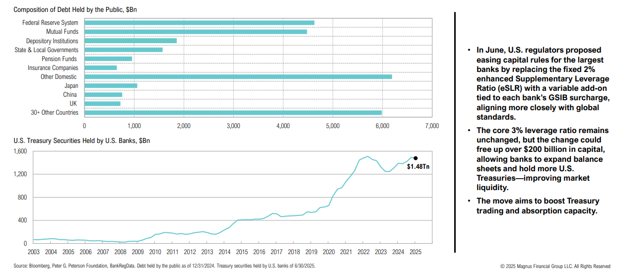 U.S. regulators have proposed easing certain capital rules for large domestic U.S.banks which could allow them to hold more Treasuries (and improve market liquidity)