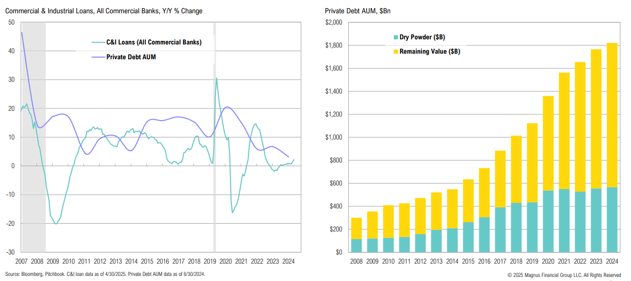 Private credit AUM has increased for the 16th consecutive year, albeit at a slower pace