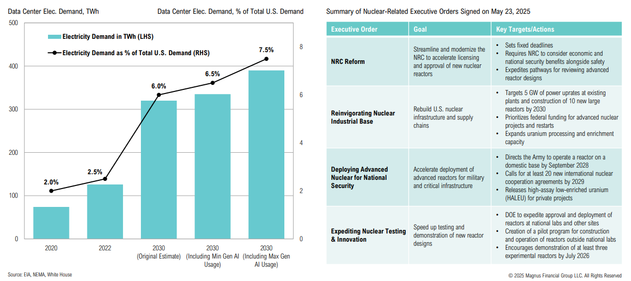 White House nuclear executive orders represent a strategic shift, positioning nuclear power as central to energy reliability (particularly in rising data-center driven demand) and economic growth
