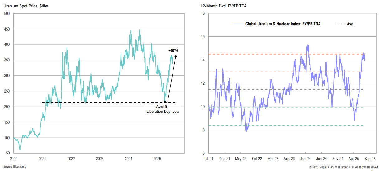 Uranium and nuclear stocks have rebounded on strong sentiment, fundamentals and ongoing policy support; while the long-term thesis remains intact, valuations are stretched