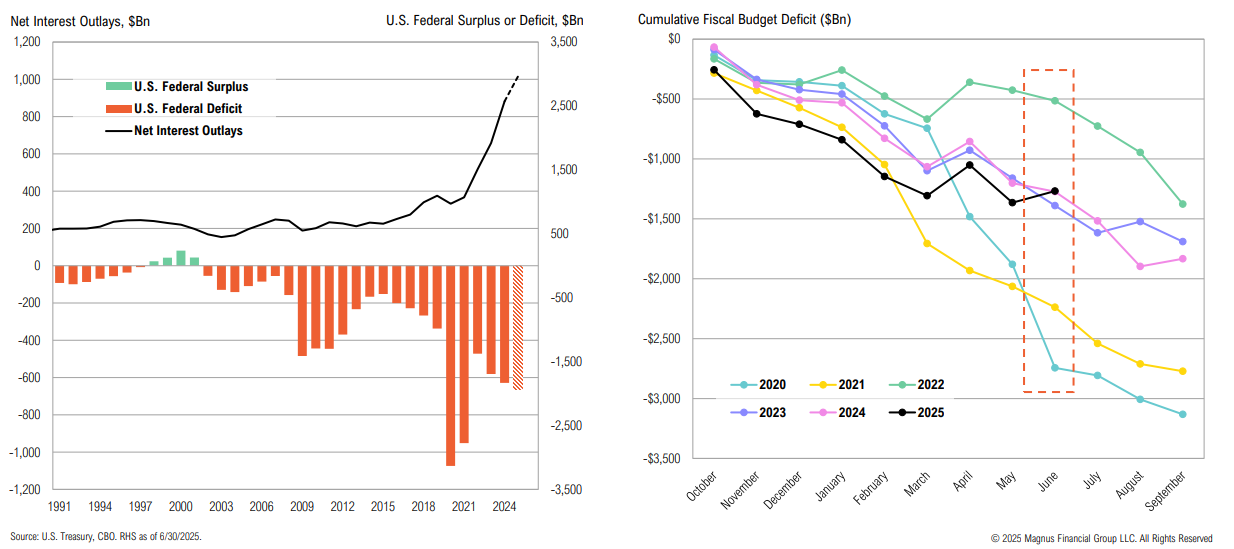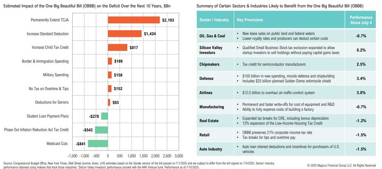 Certain One Big Beautiful Bill components may offset some of the increased spending; potential sector beneficiaries of the bill include chipmakers, manufacturers and retail
