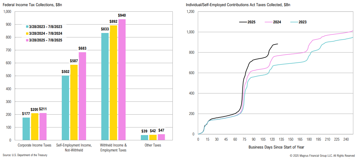 Relative to recent years, 2025 federal income tax collections have increased; non-withheld individual income tax collection have increased by 15% year-over-year