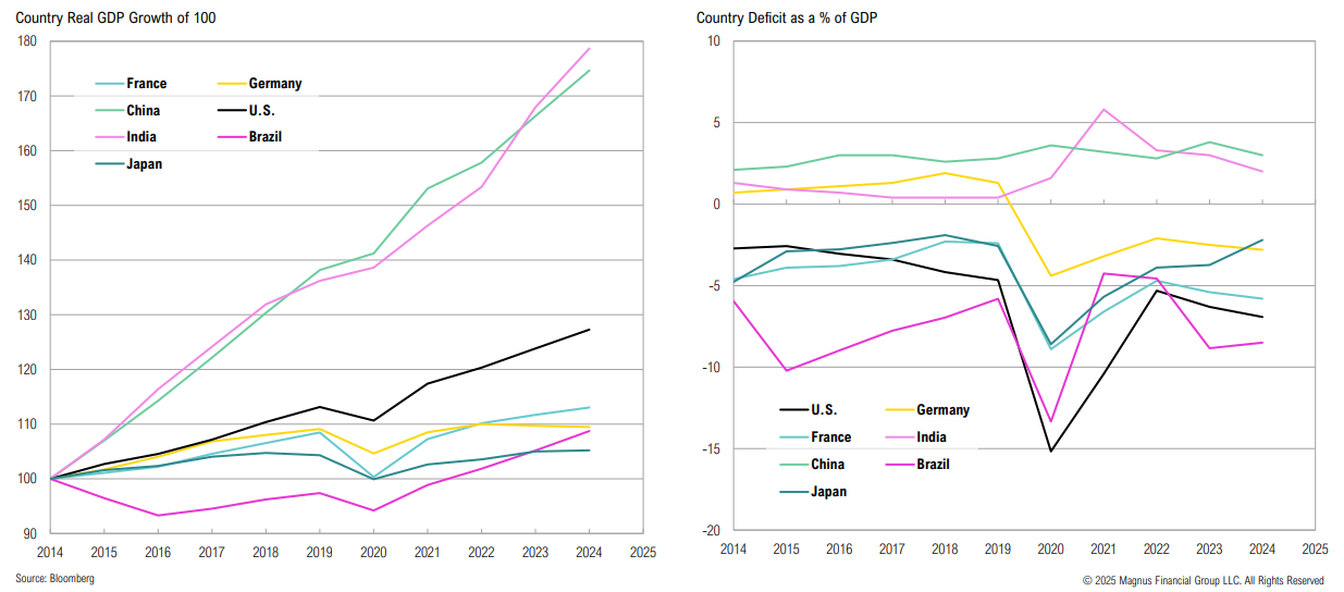 U.S. economic growth has far outpaced developed market peers over the past decade, but with wider deficits