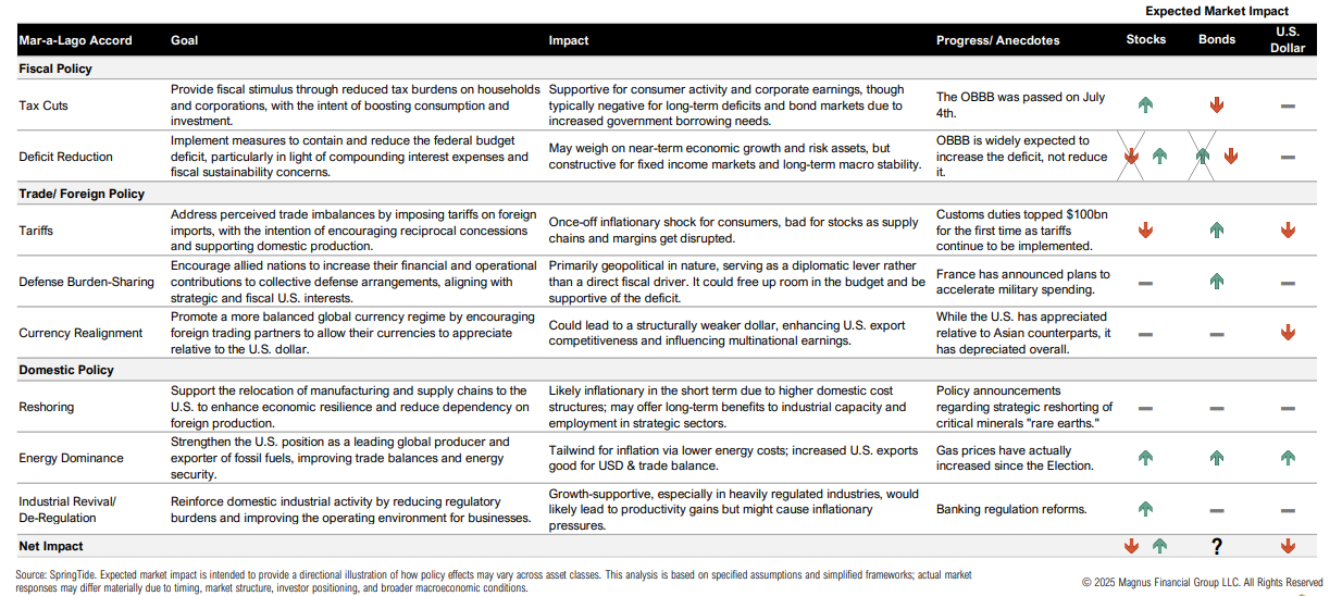 Policy backdrop is mixed: several have the potential to be net positive for growth and risky assets over time, but almost all come with trade-offs and hinge on bond market ‘consent’